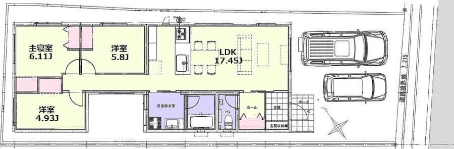 間取り | 3LDK(洋6.1 洋5.8 洋4.9 LDK17.45) |